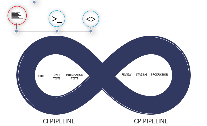 A DevOps system includes practices, tools, and a cultural philosophies that automate and integrate the processes between software development and IT teams. These processes are deployed on cloud, on-premises, and edge devices. A set of numerous conditional logic automates the use case-specific process flow, leading to monitoring, alerting, and reporting.